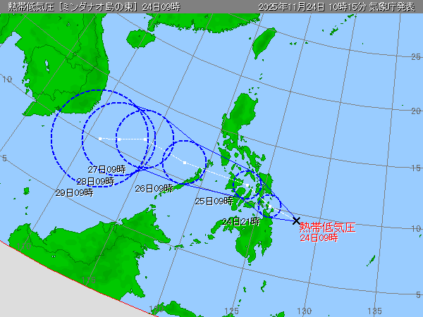 | 11月24日09時 | 9.5N | 128.2E | 1002 | 15 | --- | --- | --- | --- | TD |