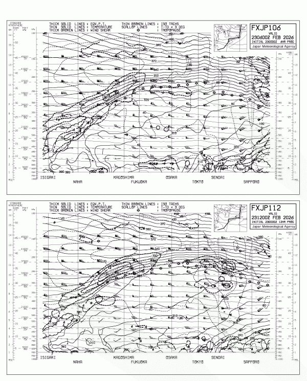※「FXJP106 - 国内航空路6・12時間予想断面図」は、1日8回、3時間おきに発表しています。