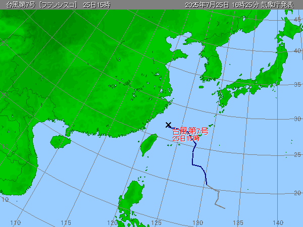 | 2025年7月25日16時25分 | 令和7年 台風第7号に関する情報 第22号 (位置) |